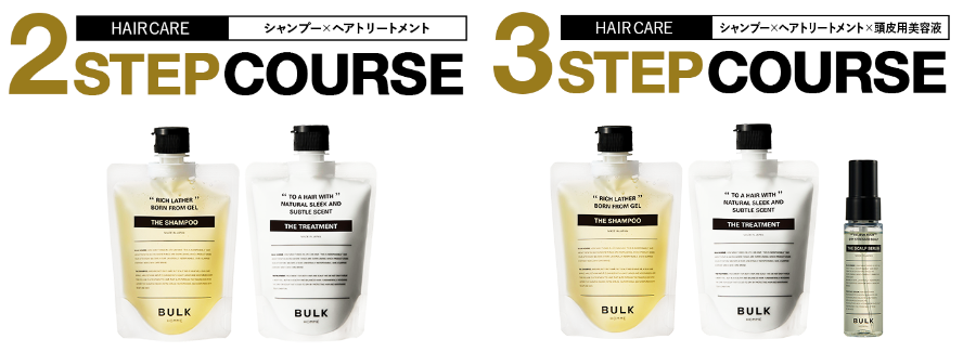 シャンプーに加えて髪の補修を助けてくれるトリートメント2つがセットの2ステップコース。